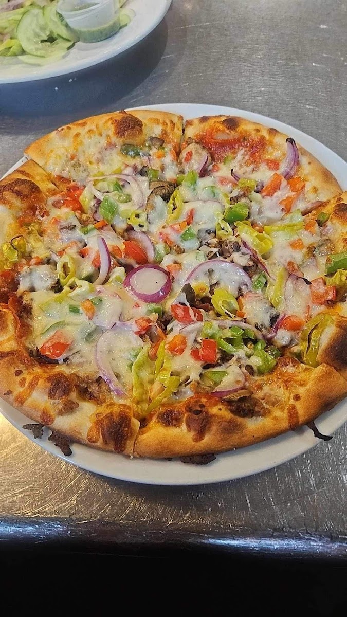 We had white chicken chili and meatballs for apps, and we were SOLD. Then our Med pasta, rigatoni pasta, and med pizza came, and we loved every bite. We also ordered their in house bread pudding, which was unique and delicious. Our server, Sierra, was excellent at recommendations and her overall service was attentive, quick, friendly, and thoughtful. This was our first time here, but we will definitely be regulars from now on! The atmosphere isn’t as strongly rated because the outside front of the restaurant is not welcoming and the kitchen staff were carrying large scale food supplies through the dining room, which killed the illusion that all the food is made in house.